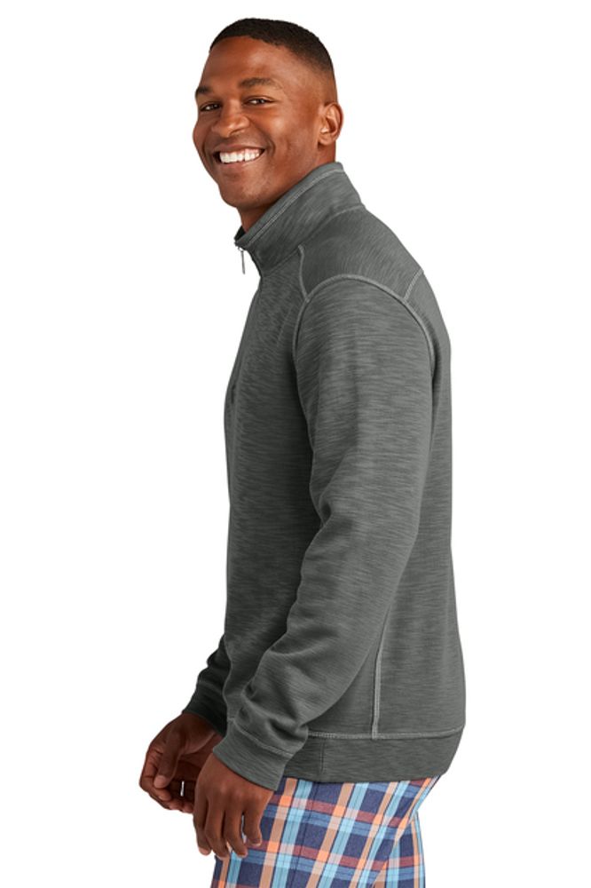 • An easy layer for sunsets and bonfires at the beach, this comfortable 1/2-zip features a slub texture knit and a sun-bleached wash for that lived-in look and feel.